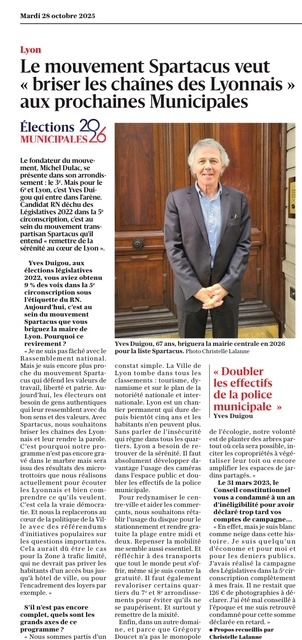 Yves Duigou, candidat à la mairie de Lyon À la tête de la liste Spartacus pour la ville de Lyon,